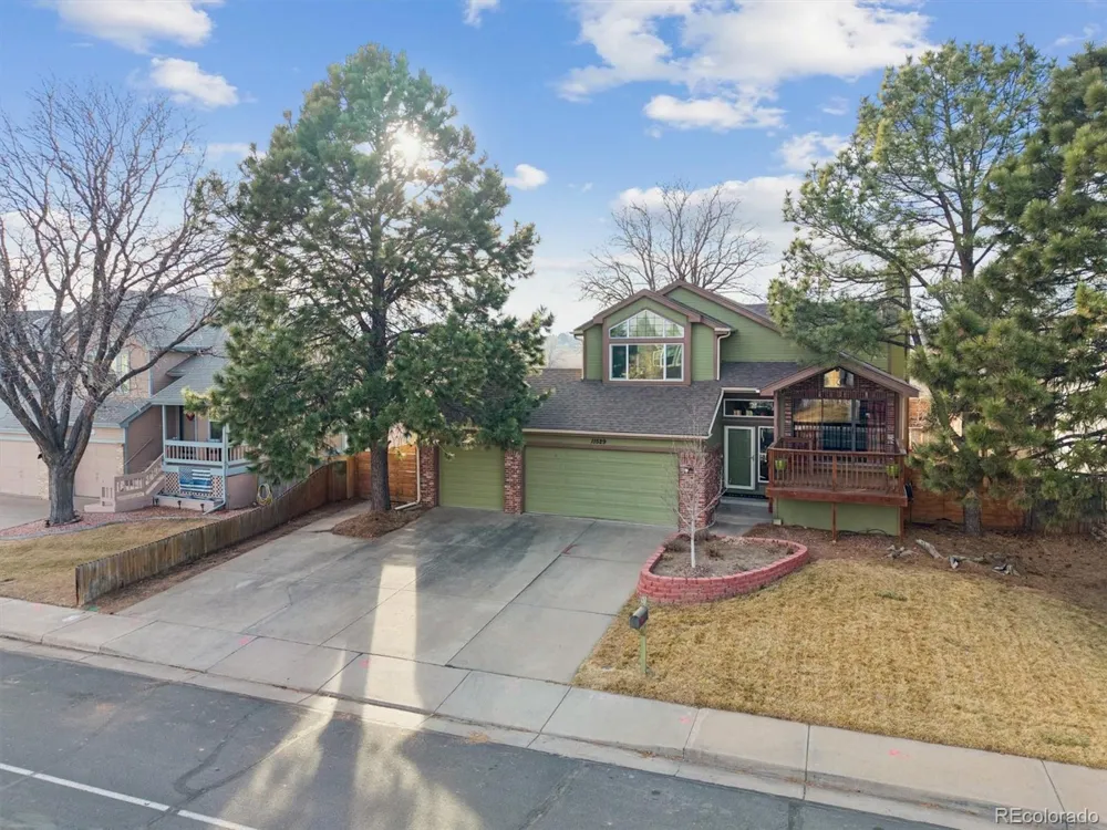Ideally situated on a premium lot backing to open space with stunning mountain and sunset views, this updated home in Brookshire offers idyllic indoor/outdoor living and entertaining, with a serene backyard pool. The covered front deck, newer windows, fresh exterior paint, gutters, and hail-resistant roof (all completed in 2017) greet you from the street with instant curb appeal. Inside, new vinyl plank flooring (2023) extends into the main living spaces. Enjoy cozying up by the gas fireplace on cool Colorado evenings, just steps from the updated eat-in kitchen. The expansive island, new appliances, built-in pantry, and ample cabinetry are a home cook’s dream. Step out the glass slider to your entertainer’s backyard, complete with a generously sized wood deck built around a mature locust tree for added shade. This fenced-in retreat includes a firepit, a 24x12’ above-ground pool for endless summer fun, and a bonus shed to house all your tools and toys. Upstairs, two sizeable secondary bedrooms share a Jack-and-Jill bath, while the primary suite features a walk-in closet and an ensuite renovated 4-piece bath. Additional features of this turnkey residence include a finished basement with an egress window – ideal as a non-conforming bedroom, home office, or playroom - a crawl space for storage, all appliances included, access for parking a trailer/RV, and an attached 3-car garage. Brookshire is a well-established family-friendly community within minutes of multiple parks, a Rec Center, neighborhood schools, shopping, dining, and major roadways. This home stands out as a unique opportunity in a premier neighborhood.