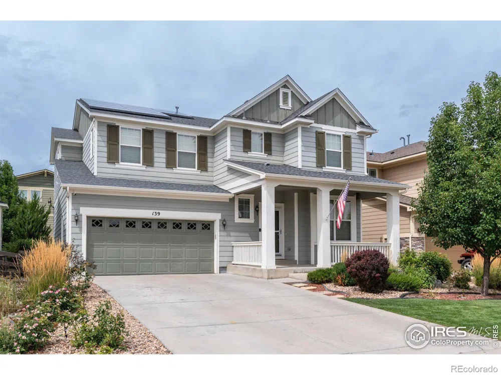 Former model home w/ upgrades conveniently located walking distance to community park and rec center as well as Old Town Erie shops, restaurants & cafes. Chef's kitchen w/ island, quartz counters, tile backsplash, gas range, double ovens, slide out drawers and pantry. Spacious great room is centered around a gas fireplace w/ designer tile surround and wood mantle. Luxury primary suite w/ 5 piece bath, soaking tub, huge walk-in closet and stylish barn door. Upstairs includes 5 bedrooms, a loft/homework area and a laundry room. Features a new roof and solar panels that are owned plus two furnaces & two AC units for added comfort. A covered front porch, tandem 3 car garage and lushly landscaped yard make this home a must see!